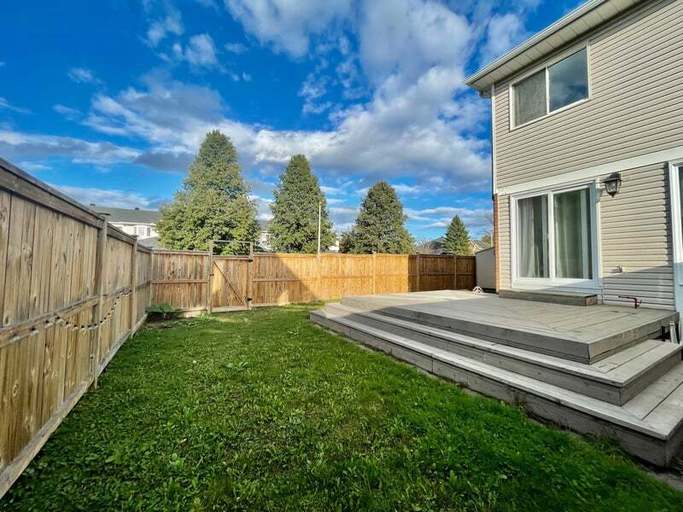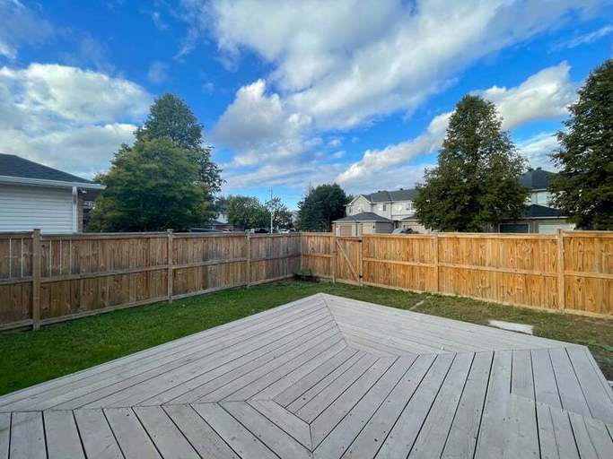 Ottawa, Orleans. Lovely, Open concept End Unit, 2 Bed, 1.5 bath Townhouse on corner lot in Fallingbrook for rent! Available Aug 2nd. This well-maintained home features a renovated full bathroom with double sinks, bath/shower combo. Eat in kitchen with an island and ample cupboards with appliances (Fridge, Stove and Dishwasher). Laminate flooring on the main. Patio door off kitchen invites you to a private, fenced backyard with a large deck, gas BBQ hook up and shed! Second level boasts 2 generously sized bedrooms, primary w/double door entry, small walk-in closet and full bathroom. The second and lower levels are carpeted. Lower level is fully finished with a large window, spacious powder room, Laundry and storage area. Central Air! Hot water tank rental extra @ $45/month. Single Car Garage and Driveway Parking! Quiet neighbourhood close to transit, schools, parks, shopping and minutes to Petrie Island!